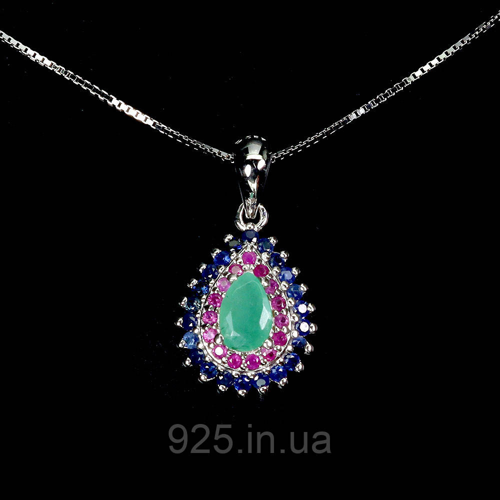 Підвіска. Натуральний смарагд, сапфір і рубін. Срібло 925.